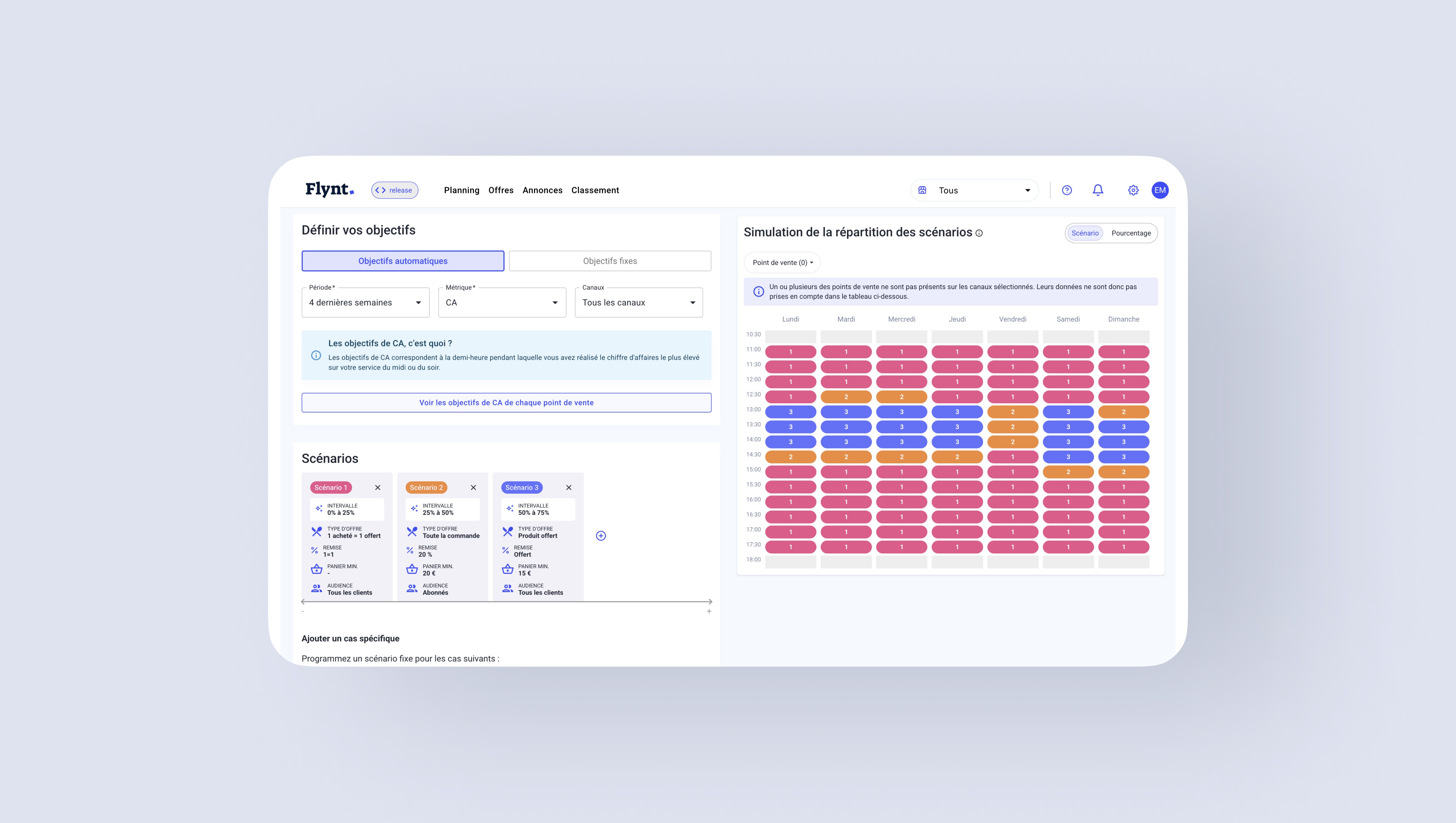 Users needed a more granular way to control offer activation, depending on factors such as time period, sales channel, or even manual adjustments. We implemented a system that allowed them to set personalized objectives and automate activation rules accordingly. The challenge was balancing automation with user control, ensuring that advanced users had enough flexibility while keeping the system accessible for beginners.